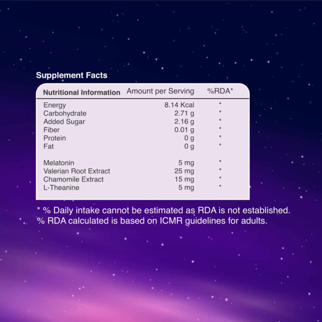 A science-backed blend of Melatonin, L-Theanine, and Vitamin B6 designed to calm your mind, support faster sleep onset, and improve sleep quality